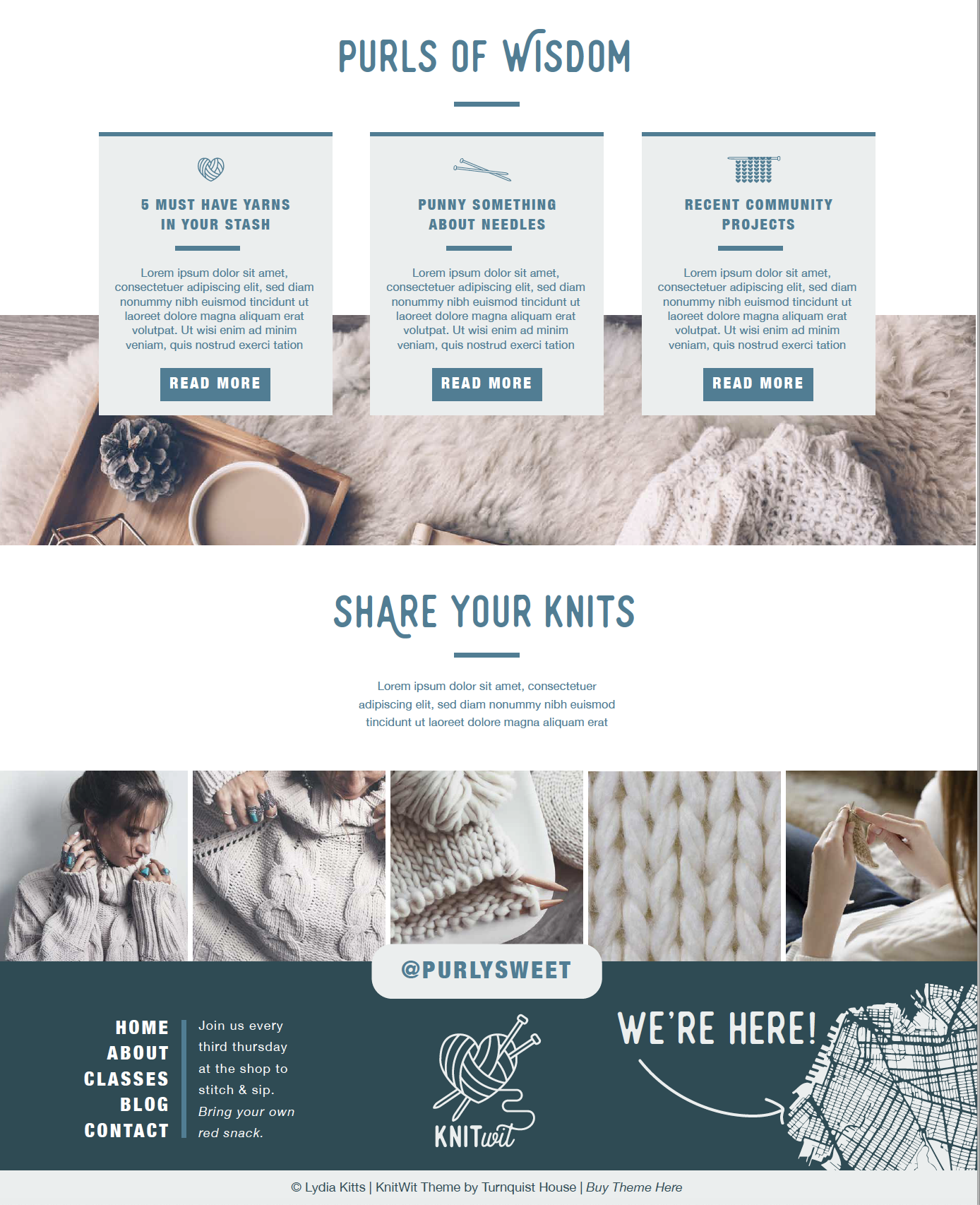 “Making knitting cool again is our mission. Everything we DIYed was decidedly uncool. We're thankful for Lydia's design eye, finding purls of inspiration throughout the process.”