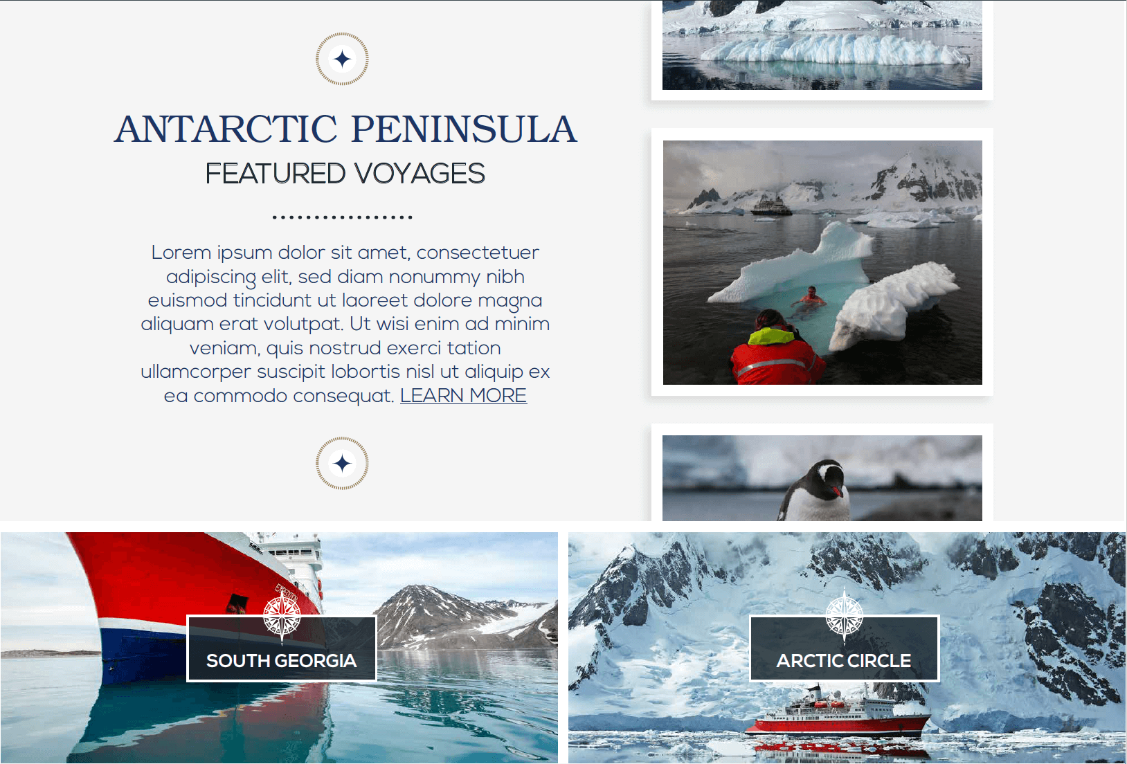 You'll see design elements repeated throughout the site, making it quick and easy for the user to compare expeditions, ships, and itineraries.